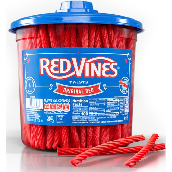 - SOFT AND CHEWY RED VINES ORIGINAL RED TWISTS IN ICONIC 3.5-POUND RESEALABLE JAR