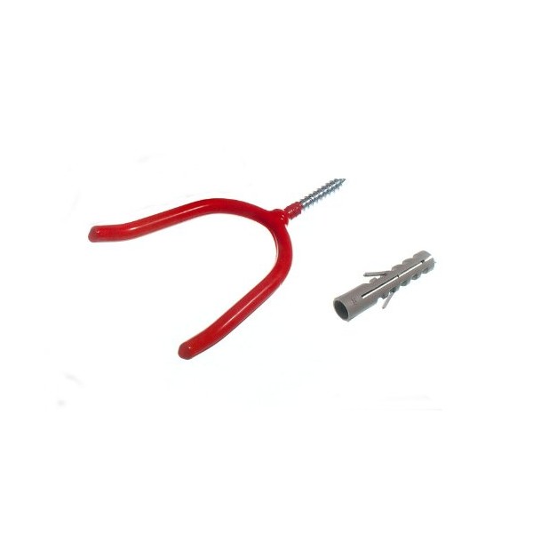 Red plastic coated steel hooks with a wide range of uses in the garage, home and garden.