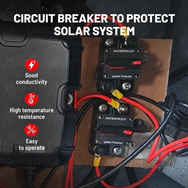 RED WOLF 80AMP Circuit Breaker Waterproof Car Audio Inline Circuit Breaker with Manual Reset Fuse Holder Inverter,for Car Motor Marine Boat, for Car Audio Solar Inverter System Protection,DC 12V-48V