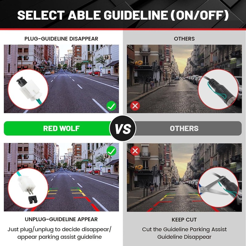 - Optional Parking Grid Lines: Fit for GMC Chevy reverse camera guideline with "ON/OFF" switch; Without cutting wiring harness required, control Sierra parking guideline by removing or inserting the small black block