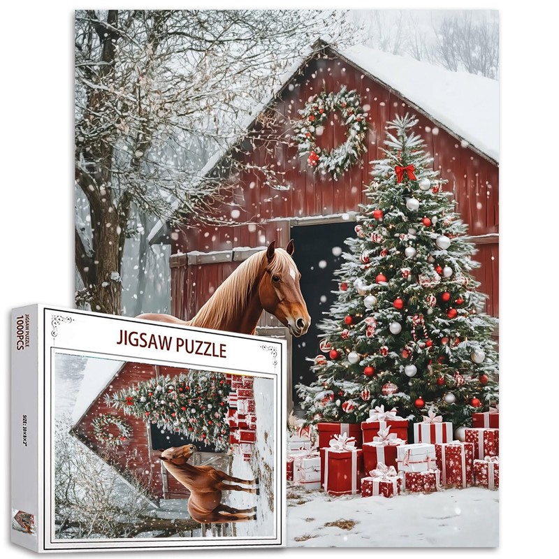 Red Wooden House1000 Piece Jigsaw Puzzles for Adults Christmas Trees Painting Jigsaw Puzzle Animal Horse 1000 Pieces Puzzles Game Home Wall Decor DIY Craft Winter Forest Puzzle Art Gift Box(Red)