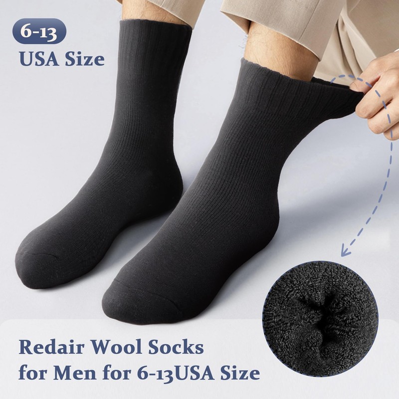 Redair Merino Wool Socks Mens, 3 Pairs of Heavyweight Thermal Running Socks for Winter, Thermal Warm Boot Socks for Outdoor indoor, Moisture Wicking Soft Crew Socks fit Sizes 6-13