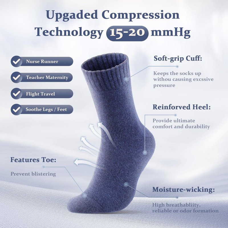 PREMIUM MATERIAL: Crafted from high-quality merino wool, nylon, and spandex, these men's socks offer exceptional elasticity and softness. Slip your feet into these hiking socks and experience unparalleled comfort. Designed to alleviate foot pressure, they’re perfect for long treks or everyday wear, ensuring your feet feel relaxed and pampered all day long.