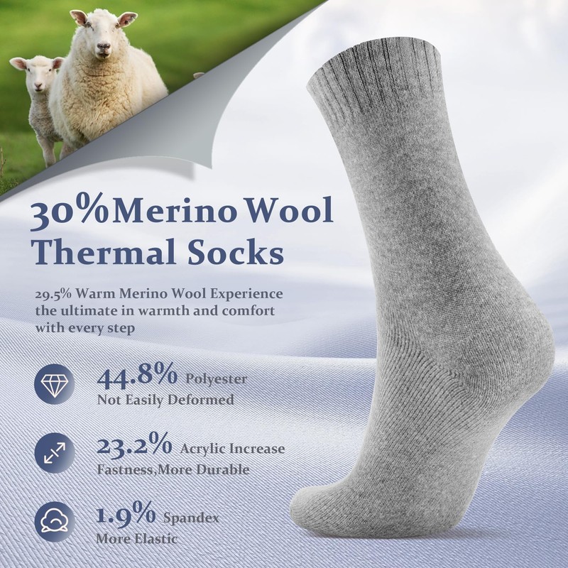 • SUPERIOR WARMTH: The thickened fabric enhances the thermal insulation, making each pair of socks feel like a cozy embrace during the cold winter months. These wool socks act like a warm fireplace for your feet, keeping them snug and protected from harsh weather. Trust us—your feet will thank you for the warmth and comfort they provide.
