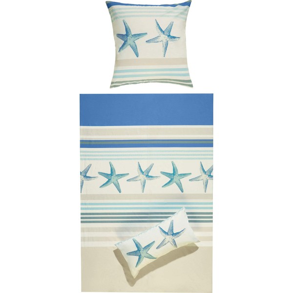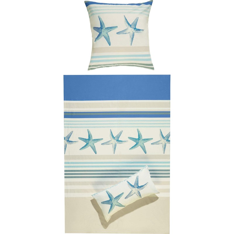 REDBEST Bed Linen Renforcé Blue/Beige Size 135 x 200 cm (80 x 80 cm)