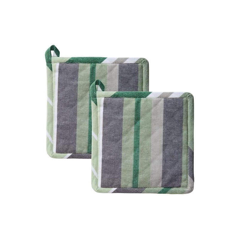 REDBEST Topflappen "Streifen" 2er-Pack Baumwolle grün Größe 20x20 cm