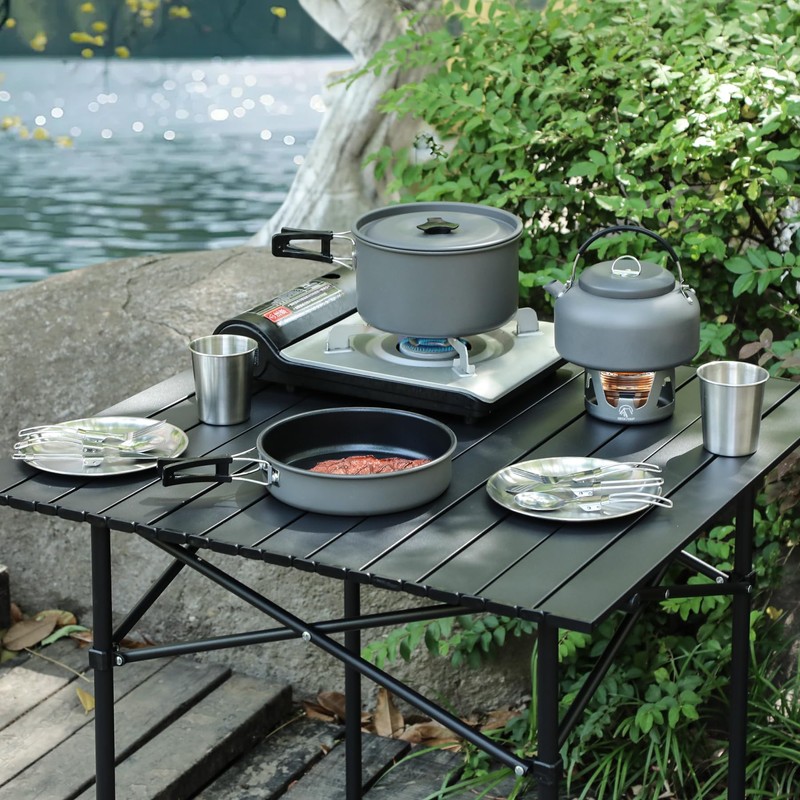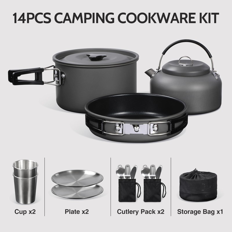 - Versatile for Any Outdoor Adventure: Whether you’re brewing morning coffee in the kettle, frying eggs in the pan, or serving stew in the plates, this set adapts to all cooking needs. The durable materials and thoughtful design make it a reliable companion for family camping trips, solo hikes, or backyard grilling. Elevate your outdoor meals with convenience and functionality.