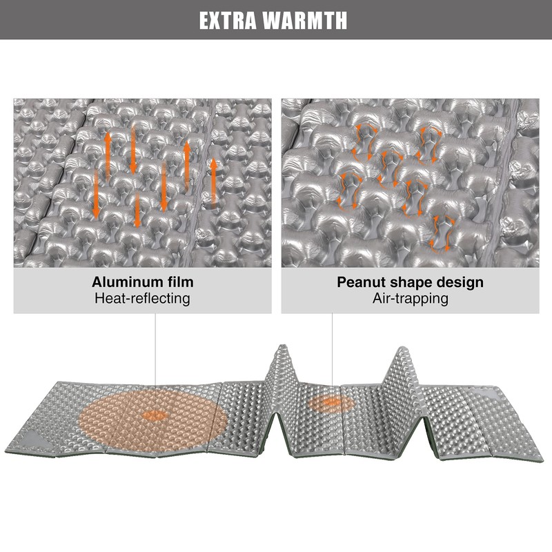 - Extra Warmth: Thermal capture surface on foam camping mat reflects radiant heat back to your body, amplifying the warmth of the heat-trapping nest by 20%.
