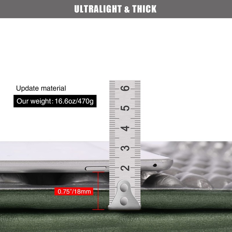 - Ultralight & Thick: Updated material, thick enough for comfortable sleep, thickness: 0.75inch/18mm. Foldable design, ultra-light 16.6oz/470g (1 piece), convenient to transport.