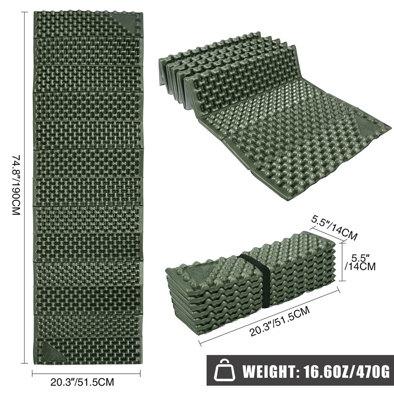 - Space Saving: Redcamp camping sleeping pad features folding accordion-style construction that is compact and easily packable. Folding size: 22.3x5.5x5.5"/51.5x14x14cm (1 Pc), open size: 74.8x20.3x0.75"/190x51.5x1.8cm (1 Pc).