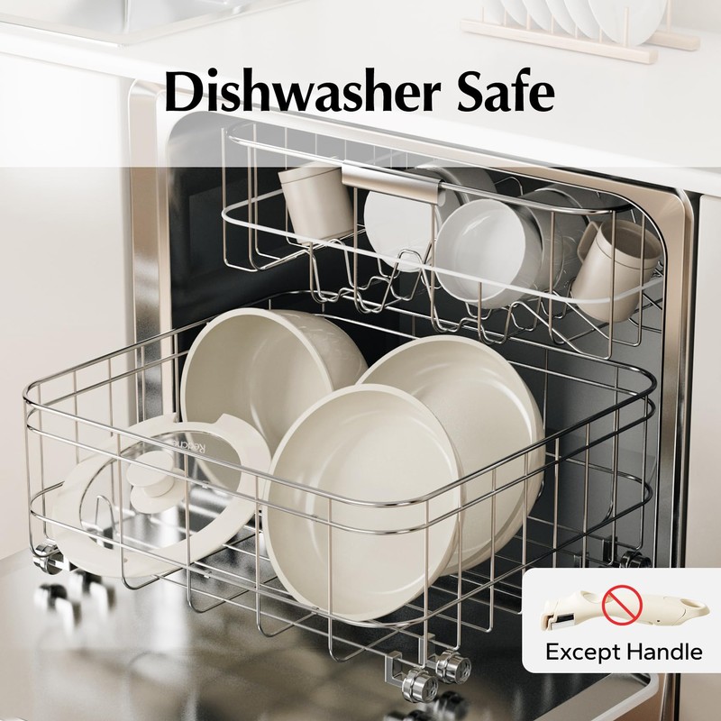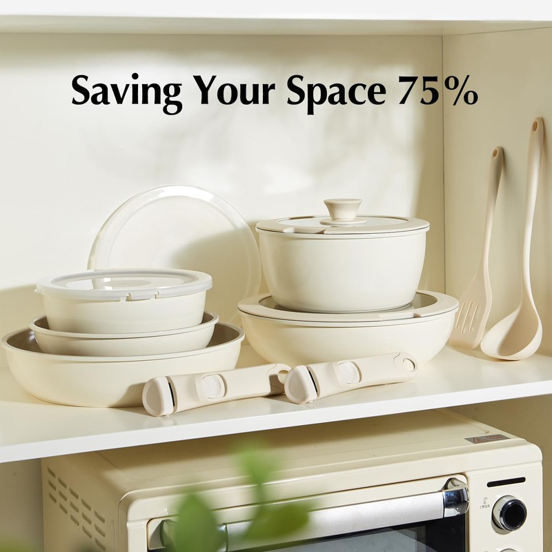 Redchef Ceramic Pots and Pans Set, Nonstick Kitchen Cookware Set with Detachable Handle, Non Toxic Cookware Set 16pcs, PFAS PFOA & PTFE Free, RV Ceramic Cookware for Camping, Dishwasher/Oven Safe