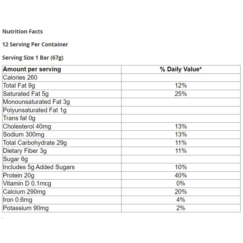 A lot of bars on the shelf at the store have excess amounts of sugar ranging from 15g and even above 20g per bar! A snack or meal replacement that’s healthy limits your sugar intake and doesn’t bring it to excess. Not only that, there’s usually a ton of carbs and low protein or just a huge imbalance in the macro count with a messed-up nutrition panel. The MRE bar has a meager 6g of sugar with a healthy ratio 29g of carbohydrates and 20g of protein that’s balanced with 9g of fats. These macro counts are perfect to fuel your workout without a drastic insulin spike and perform at your best. Packing only 260 total calories per bar, it’s the perfect snack size meal while on the go, or pre-workout, that’s loaded with proper nutrition made from real food and won’t make you feel overfull.