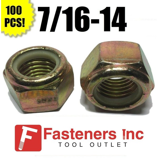 Redding Fasteners (Qty 100) 7/16-14 Grade 8 Nylon Insert Lock Nuts Nylock Yellow Zinc Plated