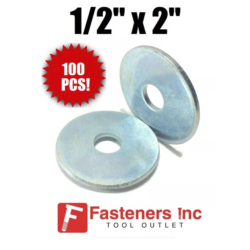 Redding Fasteners (QTY 100 PCS) 1/2" X 2" OD Extra Thick Zinc Plated Fender Washers .125 Thick