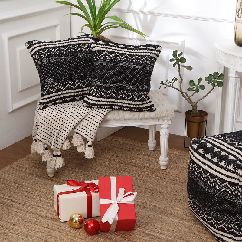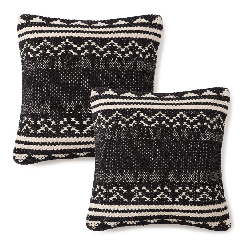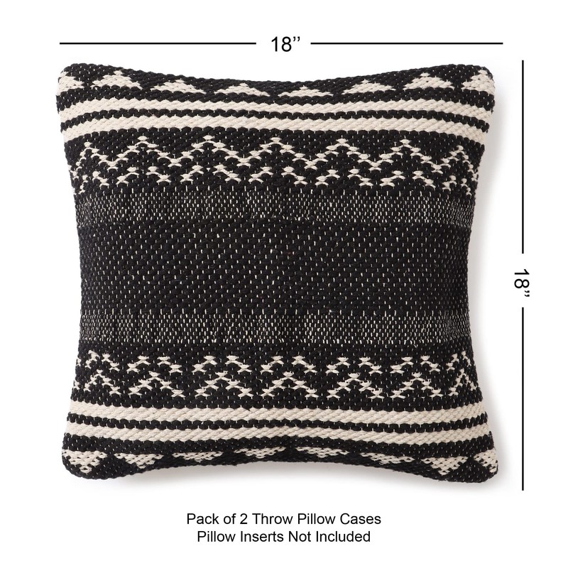 REDEARTH Handmade Boho Throw Pillow Covers - Bohemian Chic Farmhouse Style - Accent Woven Indoor and Outdoor Pillow Cushion Cases for Couch - Bed - Sofa – Set of 2-18"x18" - Ziggurat Obsession Black
