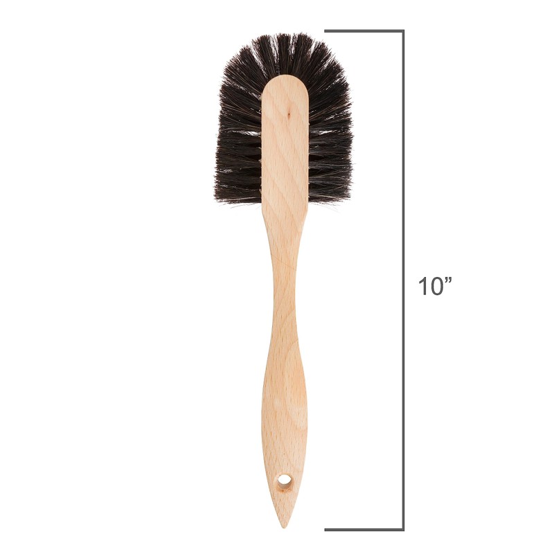 Our brushes and scrubbers clean expertly, look beautiful in any kitchen and when cared for properly, will last for years to come. This Oiled Beechwood Dish Brush is no different, with a curved handle that measures 10-1/2-inches long for ergonomic scrubbing power. The dark horsehair bristles are perfect for cleaning stubborn dirt, grime, and grease while being gentle enough to prevent scratches to your cookware.