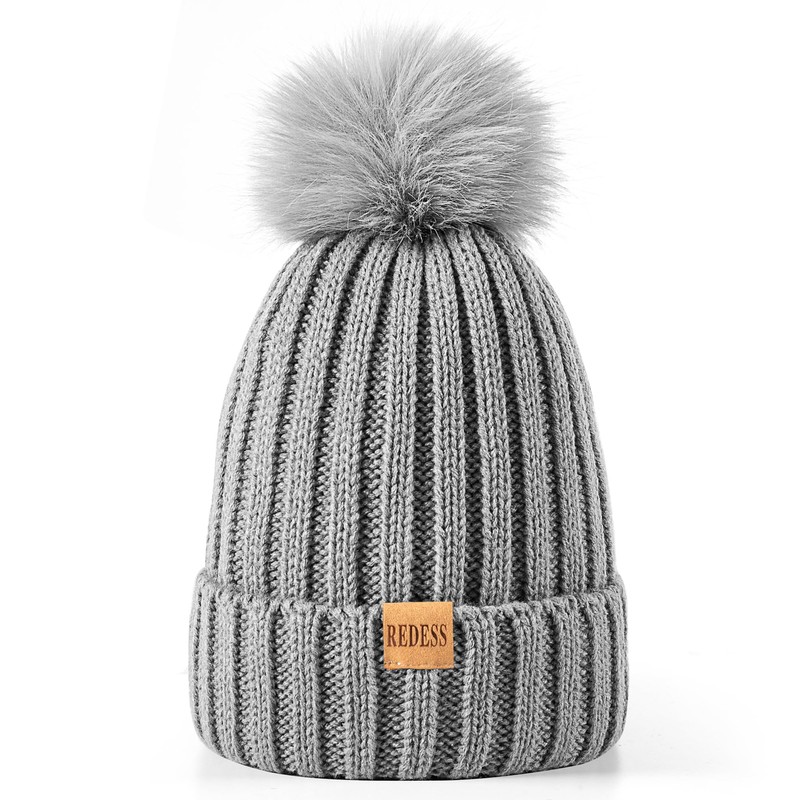 REDESS Womens Winter Knitted Beanie Hat Warm Fleece Lined with Pompom Cap Thick Slouchy Snow Knit Skull Ski Cap