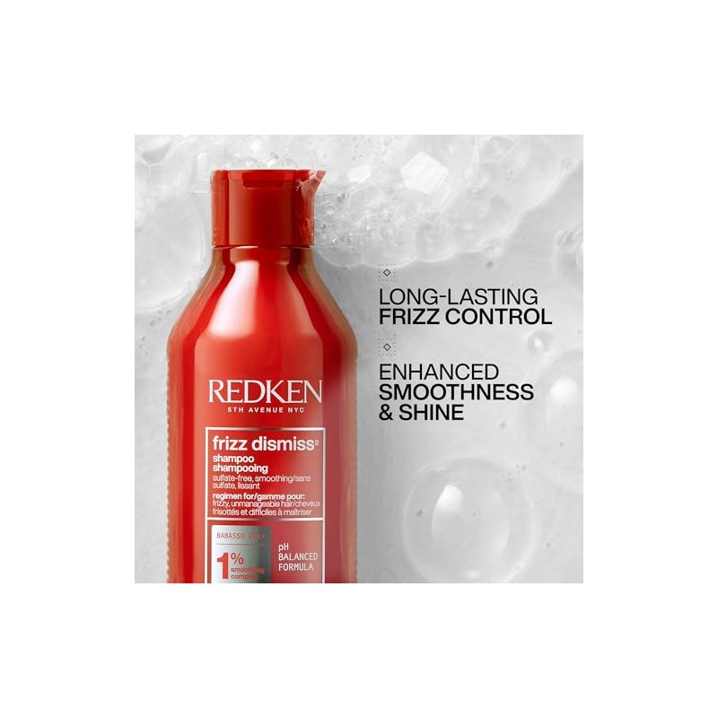 REDKEN- Shampoo Frizz Dismiss de Redken | Shampoo anti-frizz sin sulfatos|Aporta hidratación intensa, protege de la humedad y controla el frizz por un tiempo prolongado | Con Aceite de Babassu| 300ml