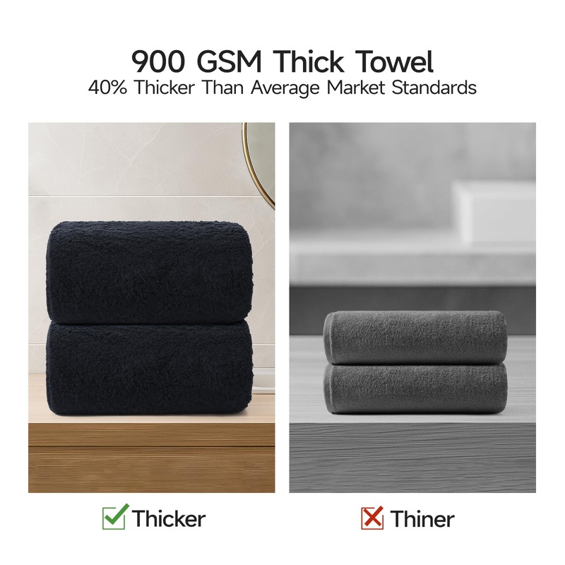 - Luxury Bath Towel Set: This set includes 2 Large Bath Towels crafted from 100% cotton. At an impressive 900GSM, they are 40% thicker than ordinary towels, delivering cloud-like softness and long-lasting luxury you can feel with every use