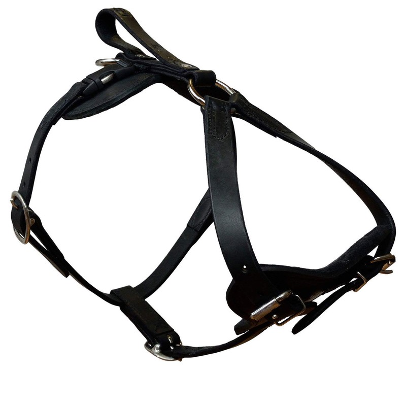 Our Padded Leather Protection and tracking dog harness is hand made in America, this Leather Dog harness is great for Schutzhund / Police K9 protection Work and can be used for a tracking dog Harness. The Padded Leather Protection and Tracking Dog Harness has a padded breast plate and has 5 points of adjustment. The choice for the serious schutzhund or police dog trainer.