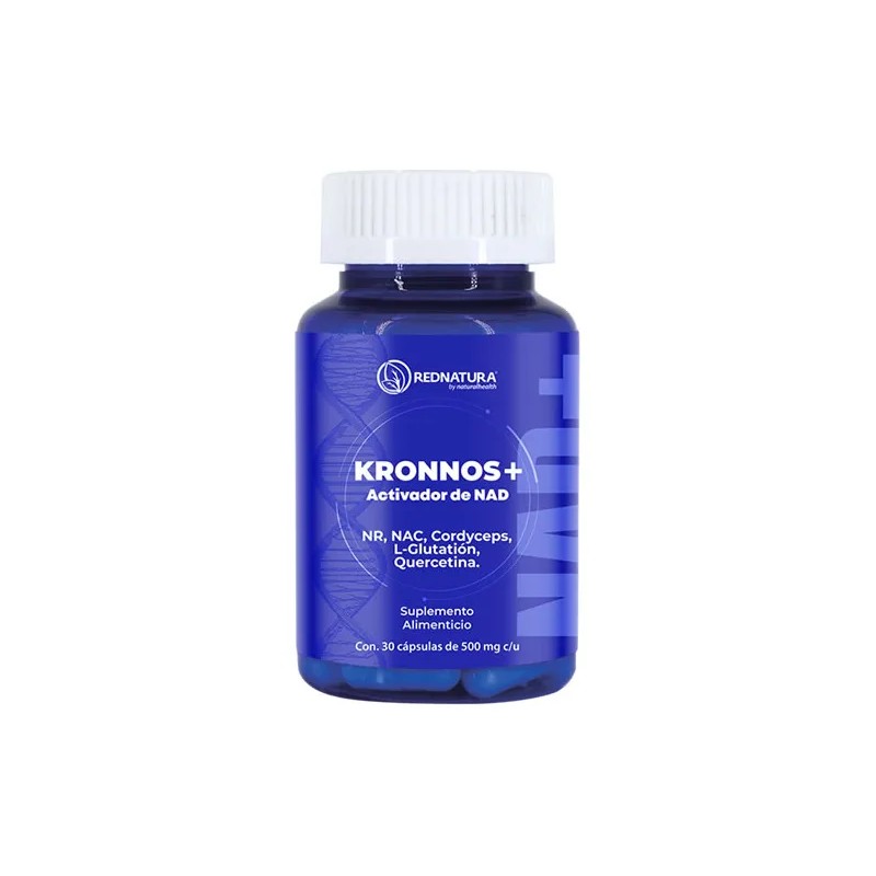 Este suplemento Rednatura NAD Kronnos+ con 30 cápsulas sin sabor contiene N-Acetil L-Cisteína, L-Glutatión y Cordyceps. Es vegano, sin gluten ni lactosa, ideal para una potente acción antioxidante, desintoxicación celular y aumento de vitalidad.