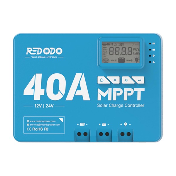 - 12/24V MPPT With 99% Tracking Technology: Redodo 12V/24V 40A MPPT solar charge controller features advanced tracking technology with tracking efficiency up to 99% and peak conversion efficiency up to 98%. It can track the maximum power point of the array to get the maximum power to charge the battery and load.