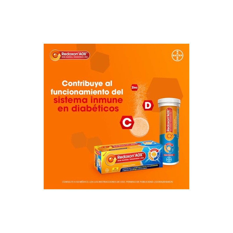 Redoxon AOX Multivitamínico con Vitamina C, Vitamina D y Zinc, 10 Tabletas Efervescentes, Sabor Naranja
