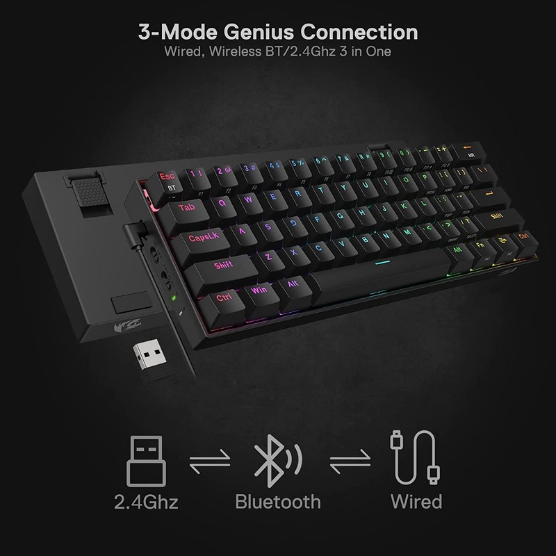 - 3-Mode Connection - Geared with Redragon innovative tri-mode connection technology, USB-C wired, BT 3.0/5.0 & 2.4Ghz wireless modes which make the user experience upgraded to another level in all fields.