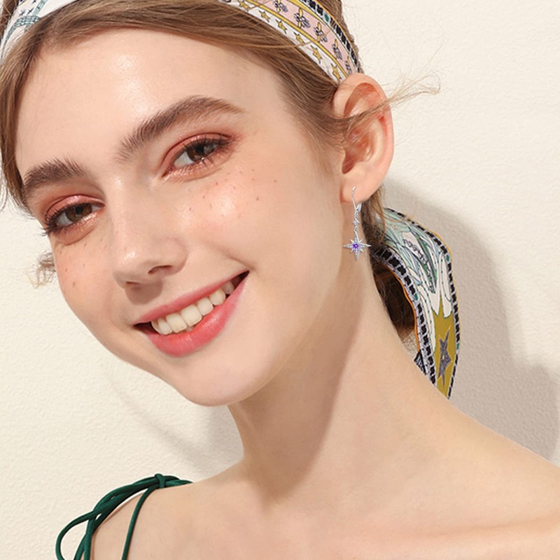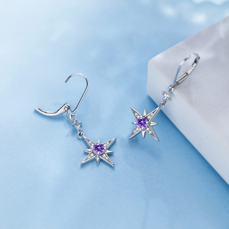 - ✨【925 Sterling Silver Earrings】- This pair of earrings is made of 925 sterling silver with silver white 5A zircon and purple birthstone on the surface. The color is bright and not easy to oxidize and discolor. Highly polished and smooth surface, comfortable to wear, hypoallergenic and extended wearing time.