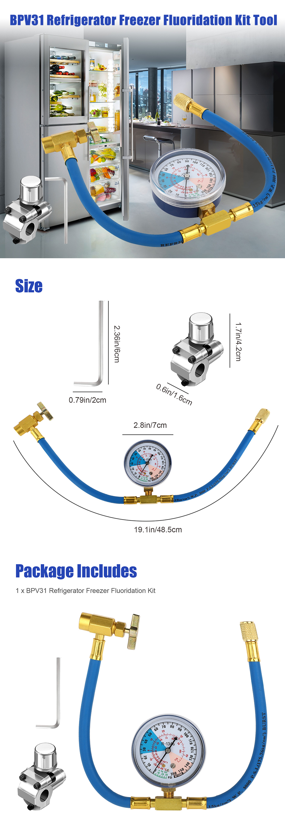 RedTagTown BPV31 Bullet Piercing Tap Valve Kit Tool w/ Pressure Gauge for Home Refrigerator