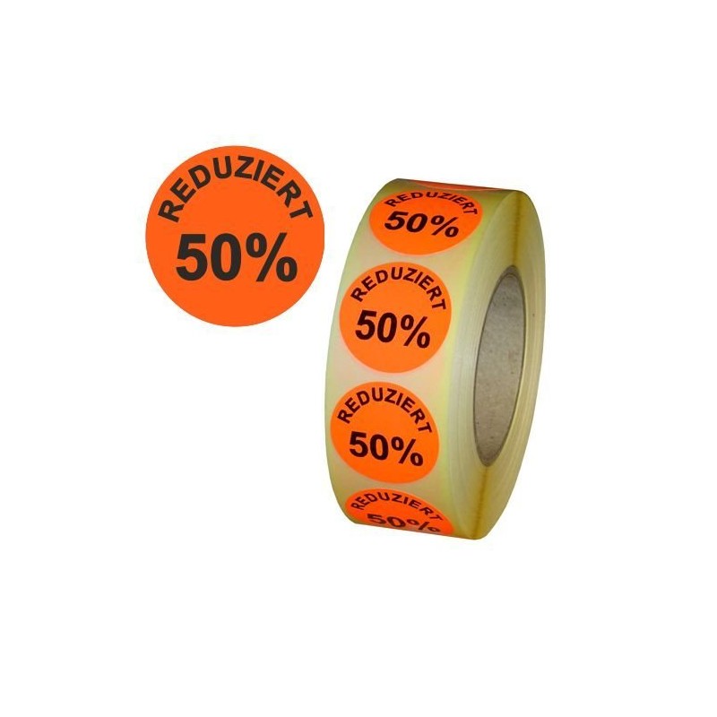 - Reduced 50% promotion labels, diameter 30 mm, bright red, pack of 5,000