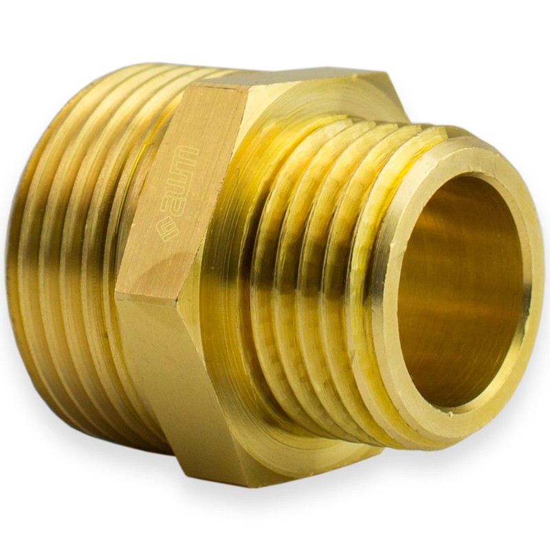 Reduced Nipple Double Nipple Reducing Nipple Fitting Hose Connection Pipe Fitting Outlet Adapter Screw Fitting Thread Fitting Hexagonal Industrial Quality - Made in Italy (Brass, 1 1/4 Inch Male x 1