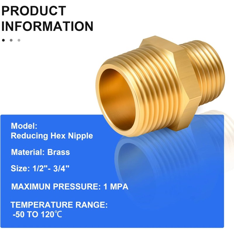 • Reducer male thread/female thread size: reducer G3/4" x G1/2" x G1". Please note the correct shape and size of the fitting. Note: For fittings without seals on the threaded ends, sealants such as hemp or Teflon sealing tape should be used. Please allow for a reasonable measurement error due to manual measurement.