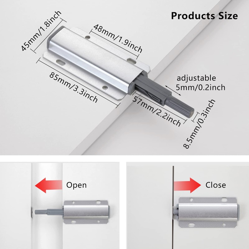 - 【PRESS TO OPEN OR CLOSE】-Redunest push latch is built in spring-loaded plunger and strong magnetic,which makes it more convenient to push the latch slightly to open or close.It doesn't need the handles or knobs,creating a clean seamless look.