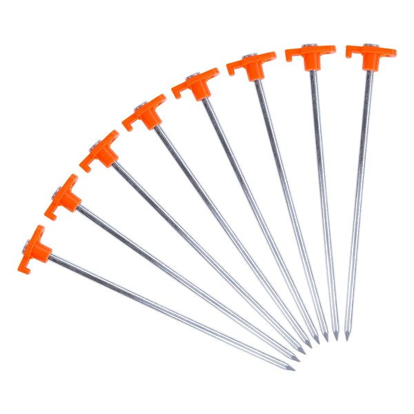 Pack of 8 heavy duty metal tent peg set. The Piledriver peg is an extremely strong tent peg suitable for imprinting in hard ground. Ideal for tents, gazebos etc, subject to change without notice.