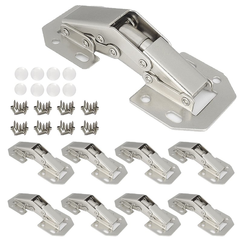 - Package: Includes 8 hinges, 64 stainless steel screws (M4*0.63 inches), and 10 silicone bumper pads.
