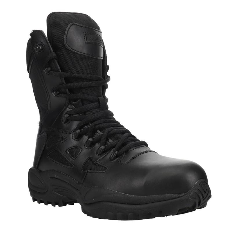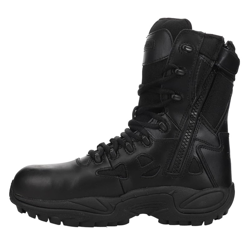 Reebok mens Rapid Response Rb Safety Toe 8" Stealth With Side Zipper Industrial Construction Boot, Black, 3.5 US