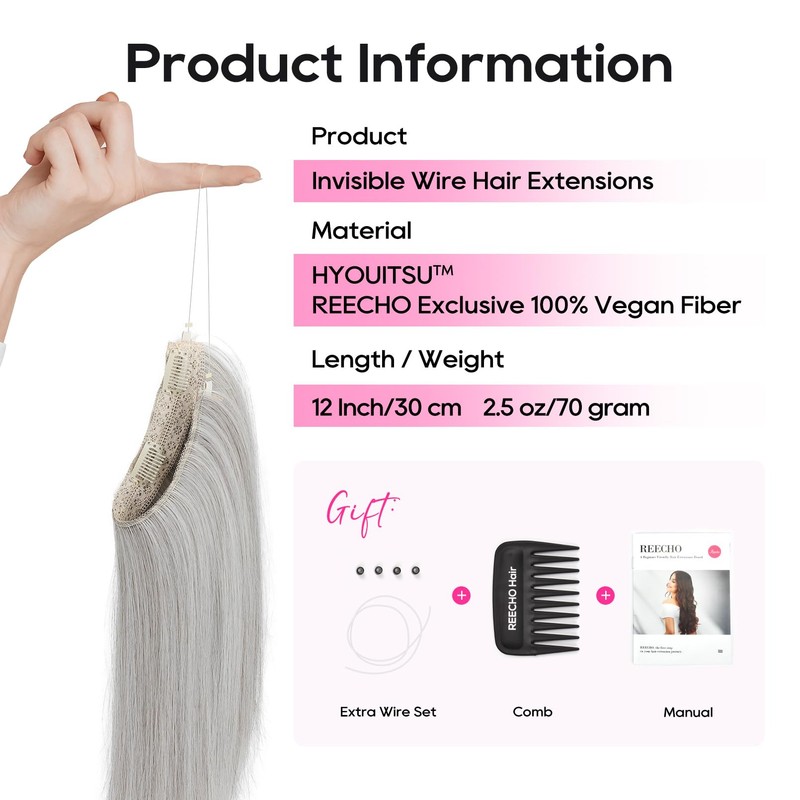 - ✨ [Glorious Length & Volume in 1-minute] REECHO invisible wire hair extensions use a transparent wire to add length and thickness without tape, glue, tape for damage-free easy on and off application in less than 1 minute