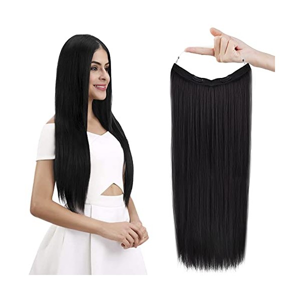 REECHO Invisible Wire Hair Extensions with Transparent Headband Adjustable Size Removable Secure Clips in Straight Secret Hairpiece for Women (12Inch(Pack of 1), Black Brown)