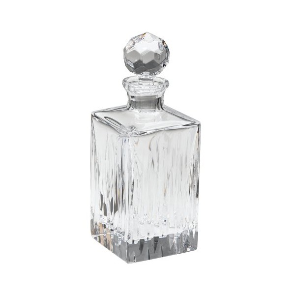Ideal for the drinker of fine wines and whiskeys, this 26-ounce Soho decanter is crafted of brilliantly clear, full-lead crystal. The thick base and square sides give the decanter a solid, heavy feel, while vertical cuts in the sides capture the light for sparkle. The multi-faceted, cut-ball stopper resembles a golf ball, sure to appeal to the links enthusiast. A wide range of Soho barware and stemware is available separately to complement the square decanter.