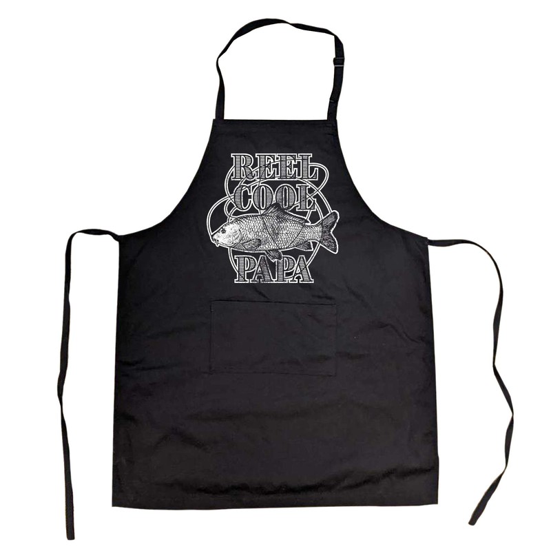Reel Cool Papa Cookout Apron Funny Fishing Father's Day Grandpa Novelty Smock Funny Aprons Dad Joke Apron Funny Fishing Apron Novelty Cooking Aprons for Black One size