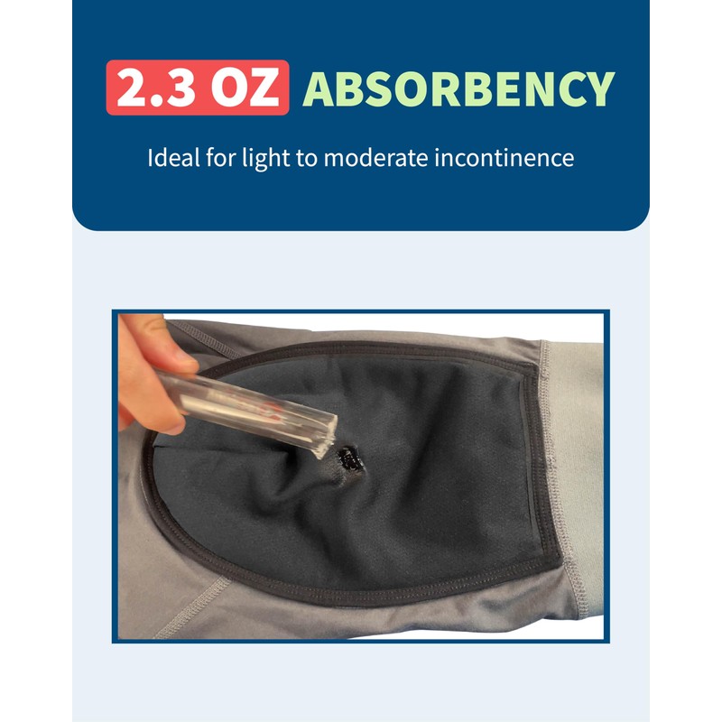 - Absorbency Level: The built-in absorbent layer of this mens absorbent underwear comfortably holds up to 2.3 oz of liquid, providing reliable protection for light to moderate incontinence. This allows users to enjoy their activities with confidence