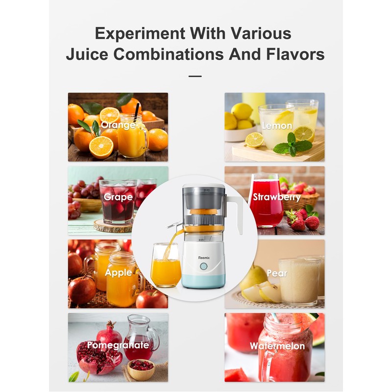 - Free Your Hands: This Reemix full-automatic electric citrus juicer is so easy to operate that you no longer need to press the top while working, and simply press the power button to squeeze delicious orange juice in 5 seconds.