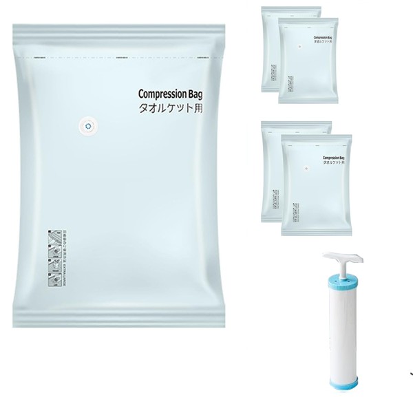 REENEW 圧縮袋 4枚セット|手動ポンプ付き|コンパクトサイズ真空収納パック|衣類・小物用|湿気・ダニ対策 (4, M)
