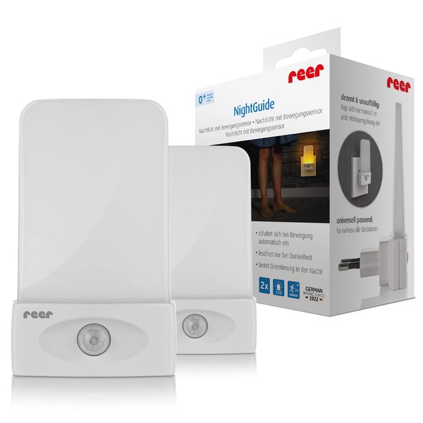 reer NightGuide Night Light for Socket - with Twilight Sensor - Orientation Light in the Dark, Pack of 2, White