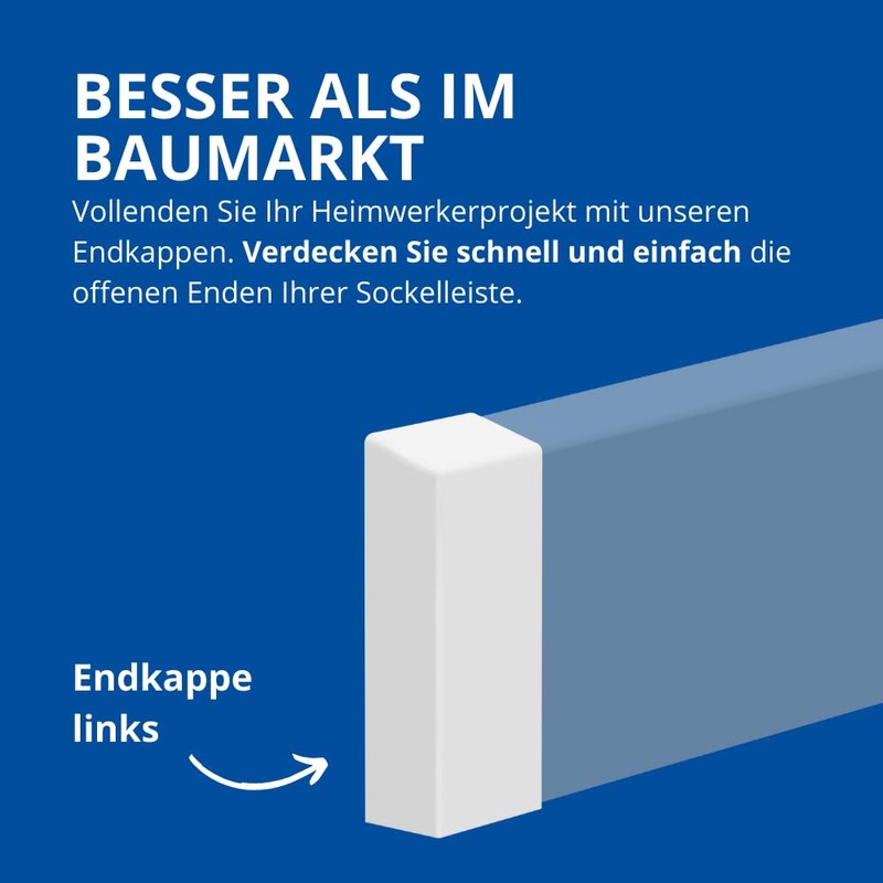 - OPTICAL FINISHING LEFT: The end piece acts as an optical finish of your skirting board. By covering the open ends, it helps to achieve a continuous and neat appearance that positively affects the overall look of your room.