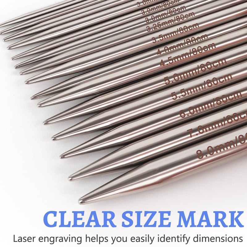 - [STAINLESS STEEL CIRCULAR NEEDLE SET]: The round needles are made of stainless steel with a smooth surface and fine workmanship, and they are linked by a sturdy and soft cable. Allowing the yarn to glide smoothly over the needle and cable. The yarn will not get stuck easily. Short round knitting needles 48cm are perfect for knitting socks, gloves, cuffs, sweaters, hats and small round knitting. A good addition to knitting needle tools. It's a great choice for knitting enthusiasts and beginners.
