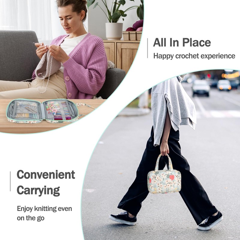 - [HIGH-QIALITY KNITTING TOOLS ORGANISER]: Our knitting needles case has smooth surface for easy cleaning. High-quality oxford cloth material makes the crochet bag soft and durable, no bad smells. Sturdy and smooth zipper closure ensure your item secure, won't fall out, and can let the crochet hook case open up all the way flat. The Needle bag been carefully put together with neat and strong stitching for long term use.