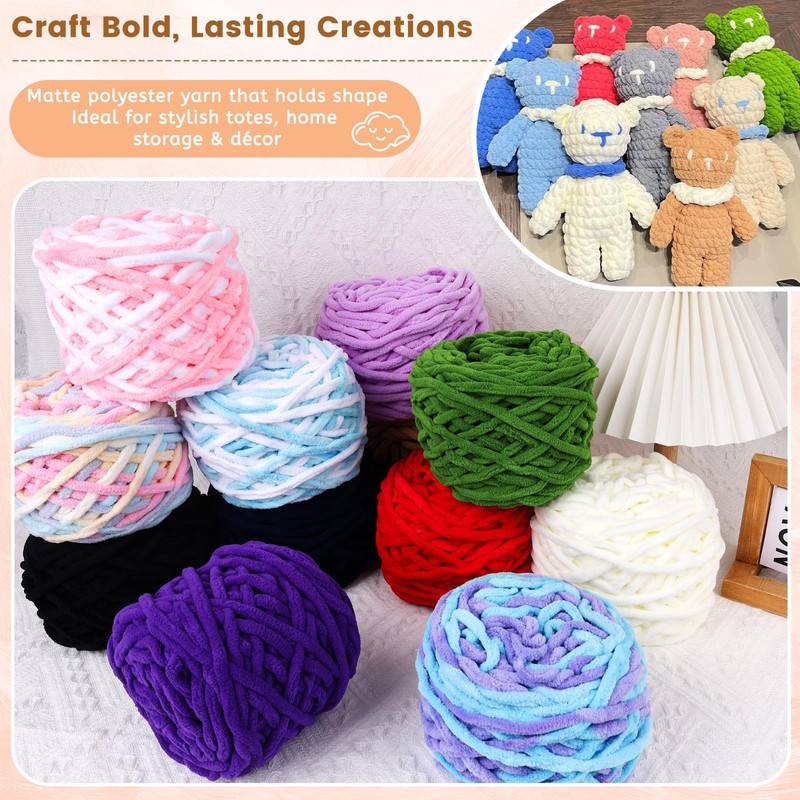 - Soft Matte Texture, Non-Fuzzy: Made from premium pure polyester, this yarn delivers a fuzzy but non-shedding, matte surface that looks clean and modern. It holds its form without sagging or fuzzing out, making it perfect for display-worthy items