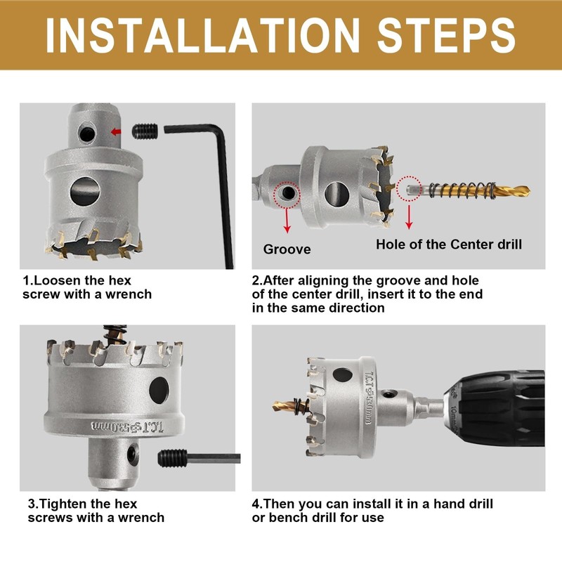 REETAI-FOUR 4-1/8'' TCT Hole Saw Kit Tungsten Carbide Tipped Hole Saw Drill Bit with Titanium-Plated Pilot Drill bit for Metal, Stainless Steel, Iron (105MM)